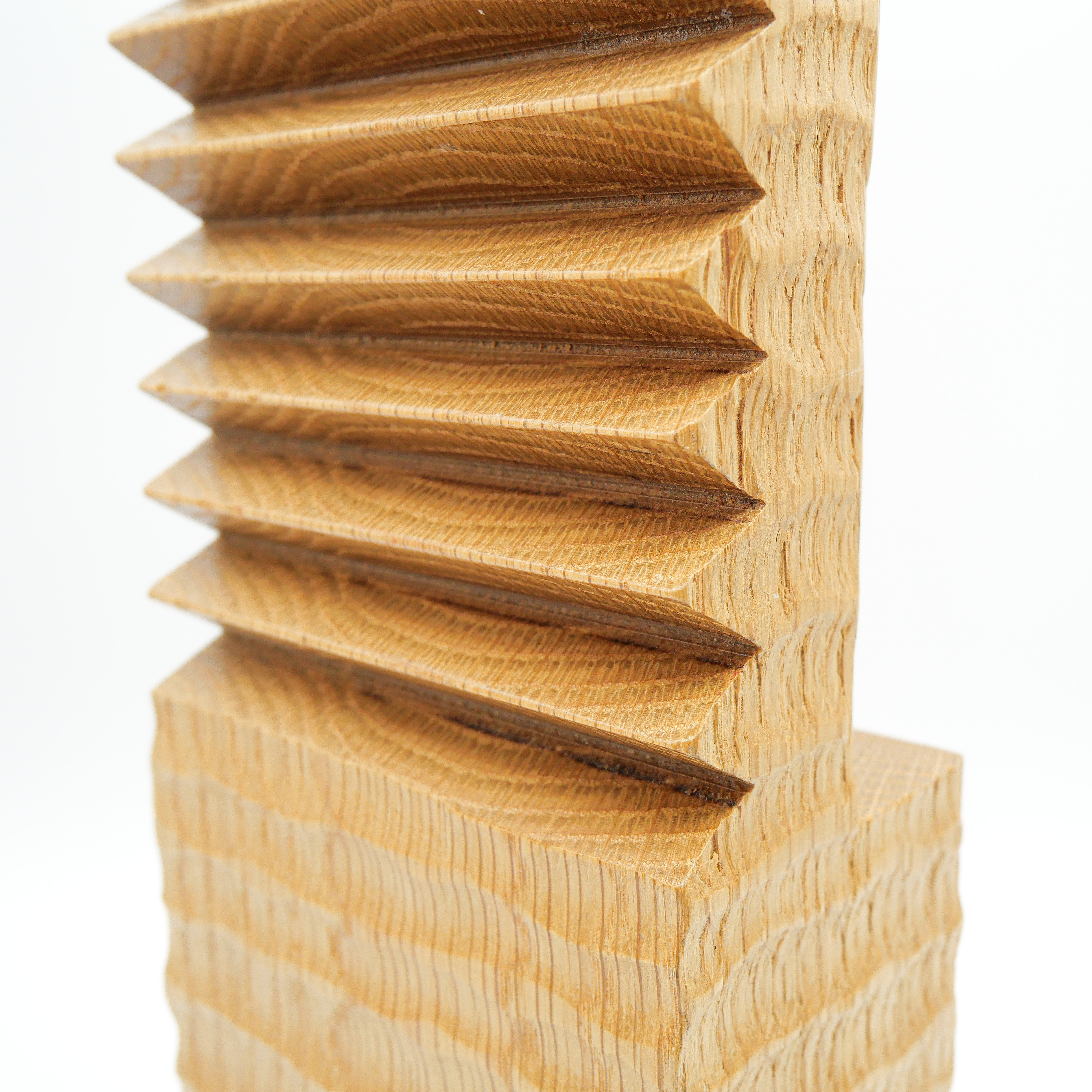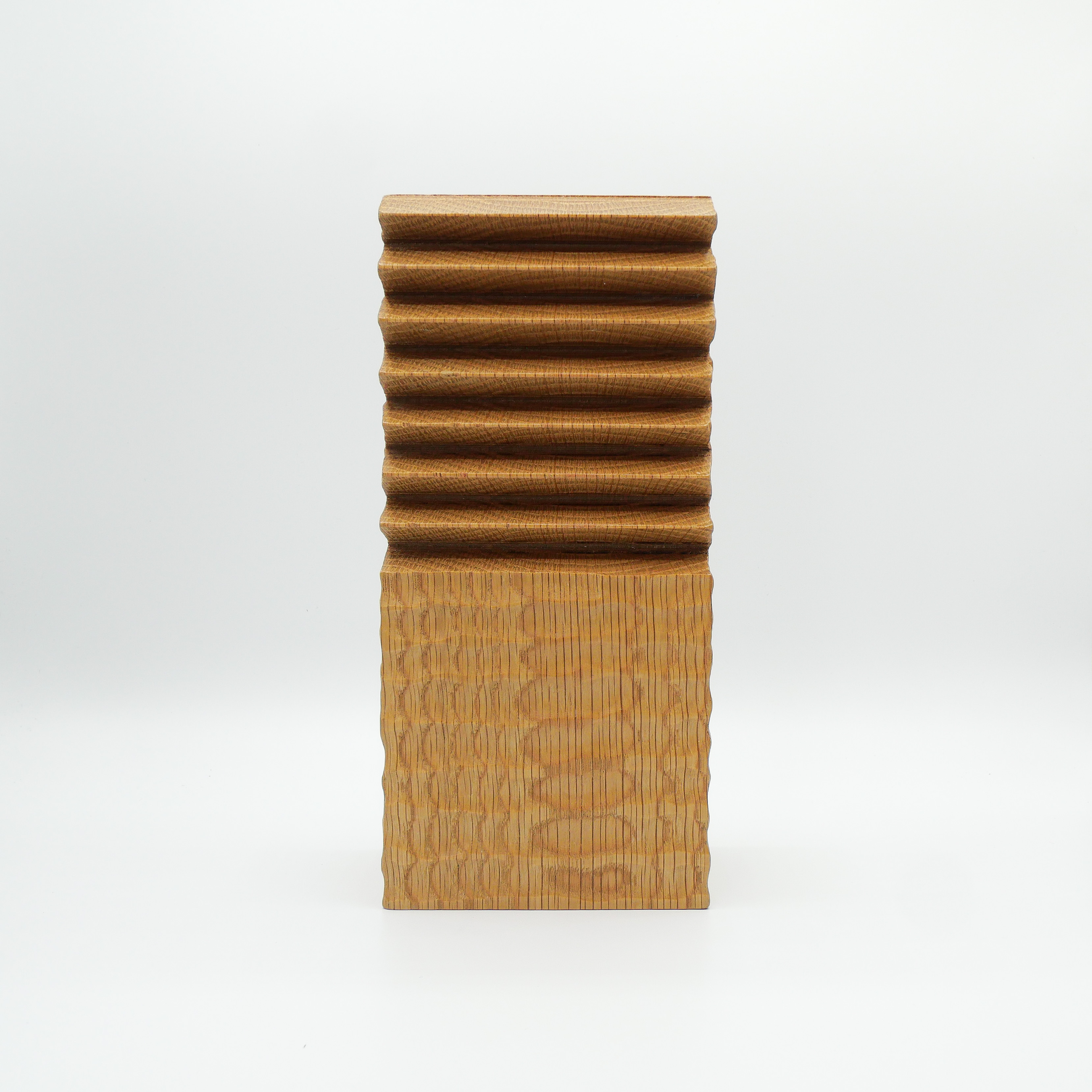 C’est un totem qui trône fièrement sur les étagères de la matériauthèque du Lab. Sa composition en bois de chêne lui vaut une couleur flamboyante.