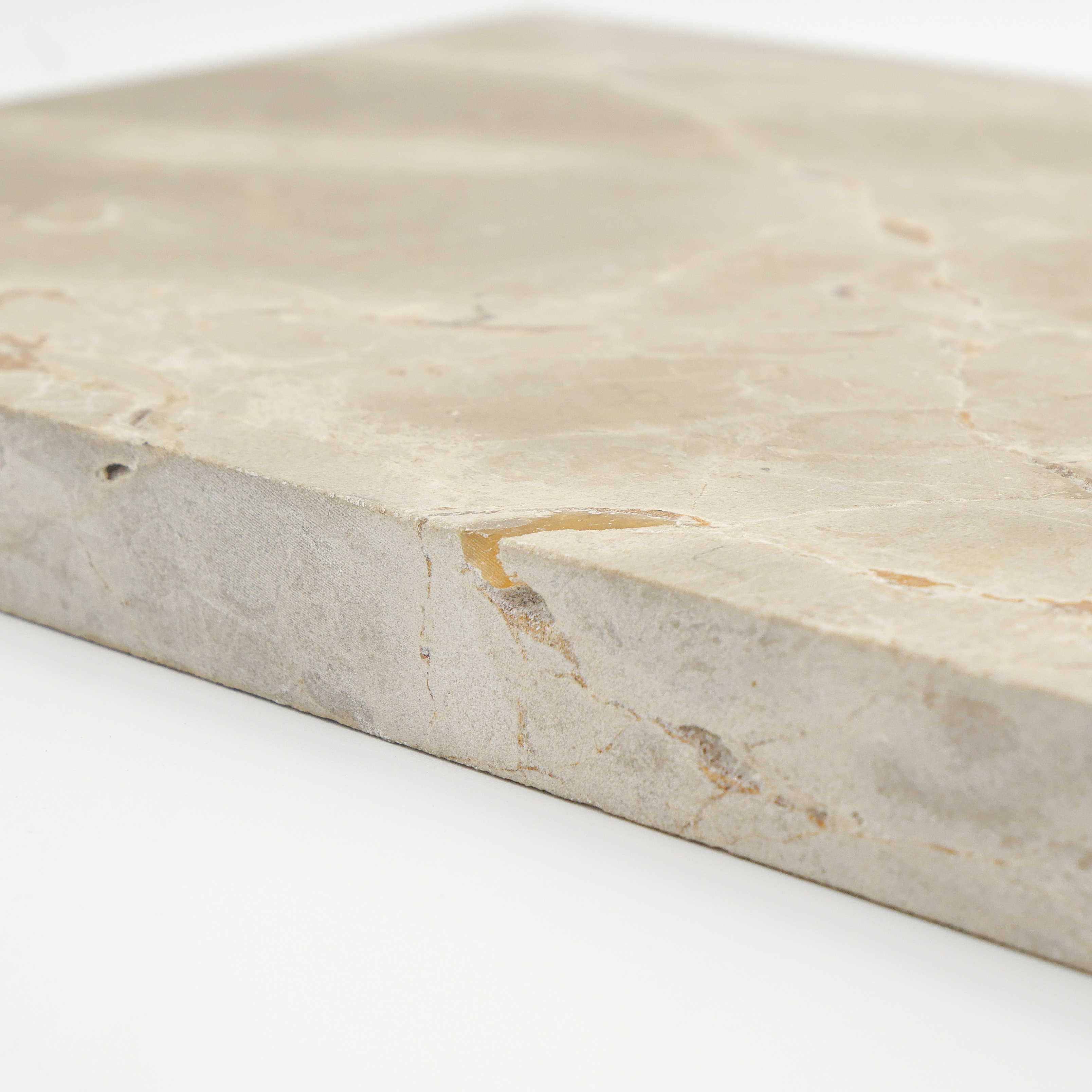 Sa couleur beige est traversée par des veines jaunes, presque dorées. C’est d’ailleurs ce qui lui donne une élégance toute naturelle et chaleureuse.