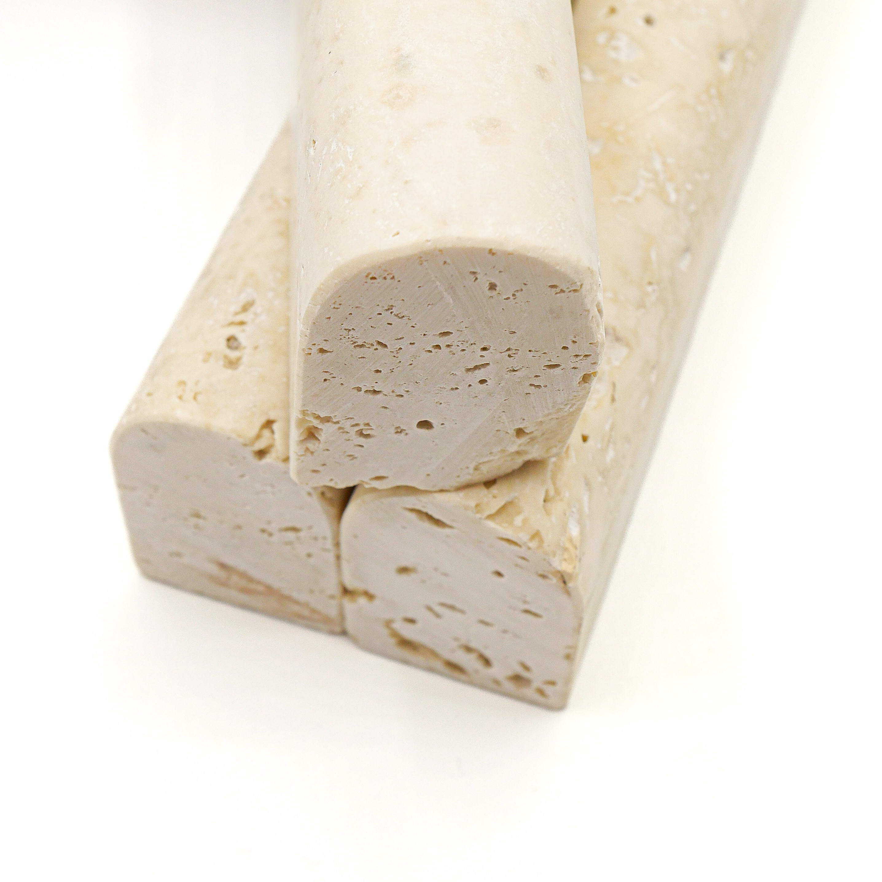 Tout droit venu de Tivoli en Italie, notre Travertin prend ici la forme de bâtonnets arrondis grâce à un découpage précis, effectué au jet d’eau.