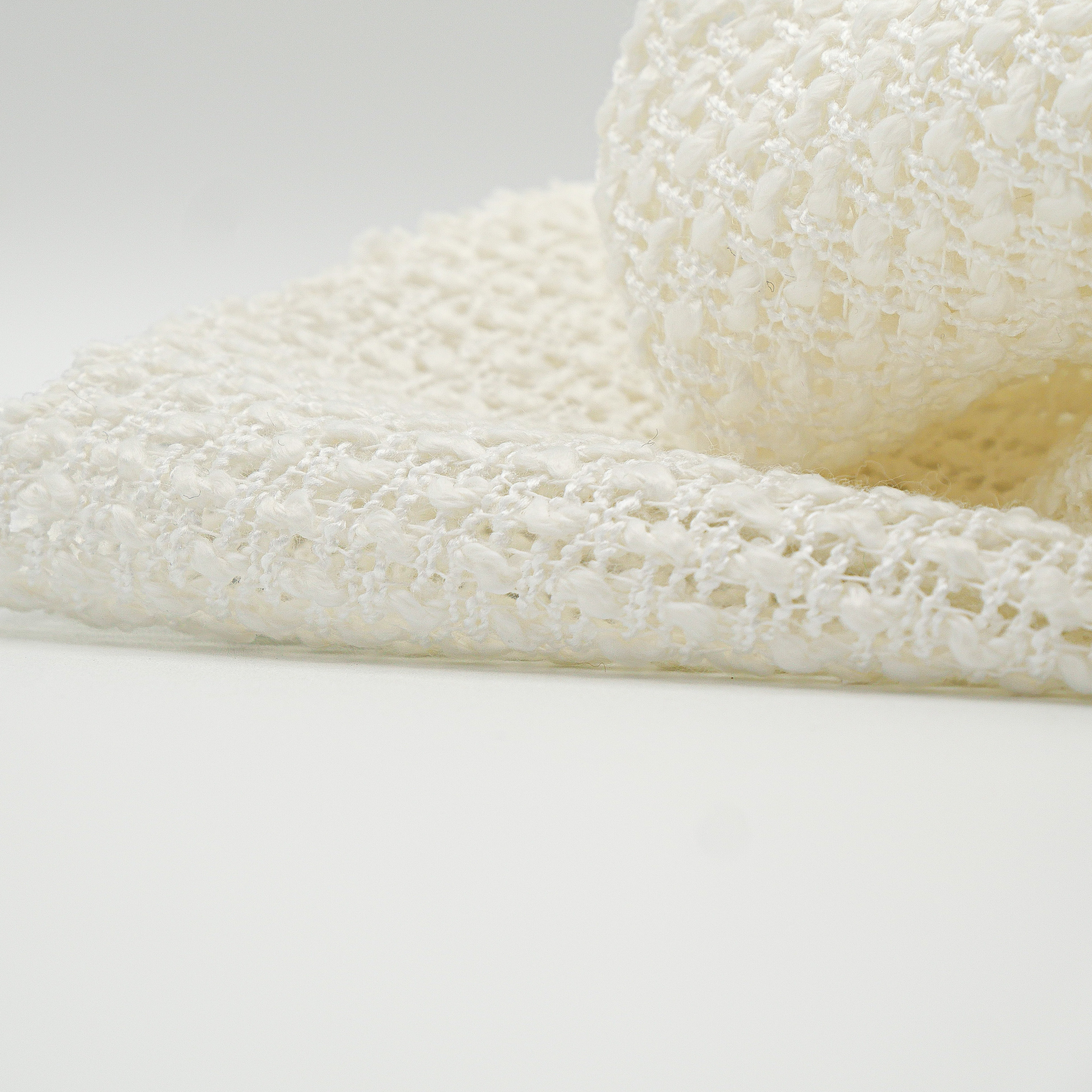 Une fois écartés, les fils sont entrecroisés avec des torsades, permettant d’obtenir une toile très aérée et douce, mais aussi très stable et qui évite les glissements.